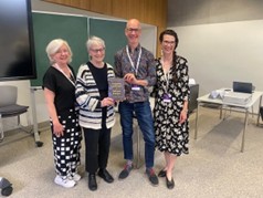 Professor John Habron-James (middle right) and co-editor Selma Landen Odom (middle left) at the book launch with two other contributing authors Marja-Leena Juntunen (left) and Katarzyna Forecka-Waśko (right).